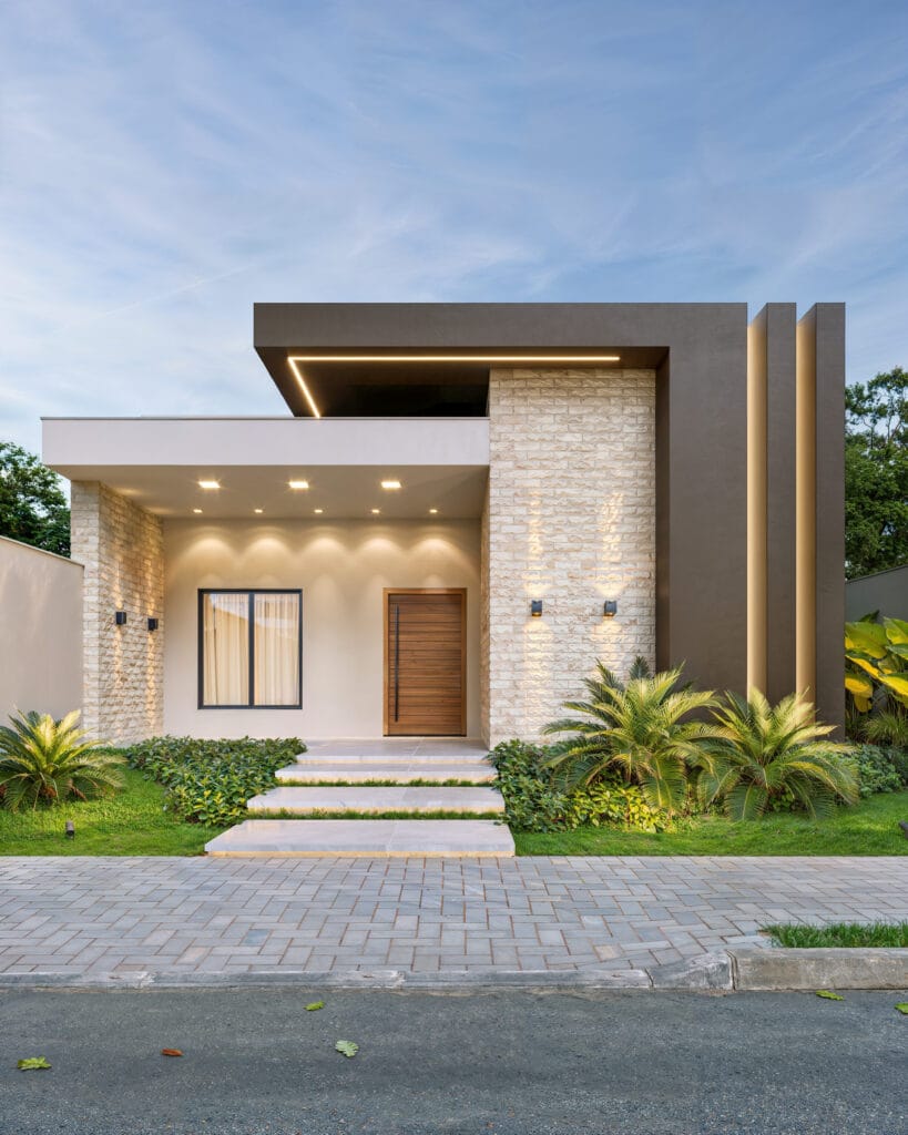 Projeto de casa térrea com cozinha gourmet conjugada e garagem para 02 carros (003)