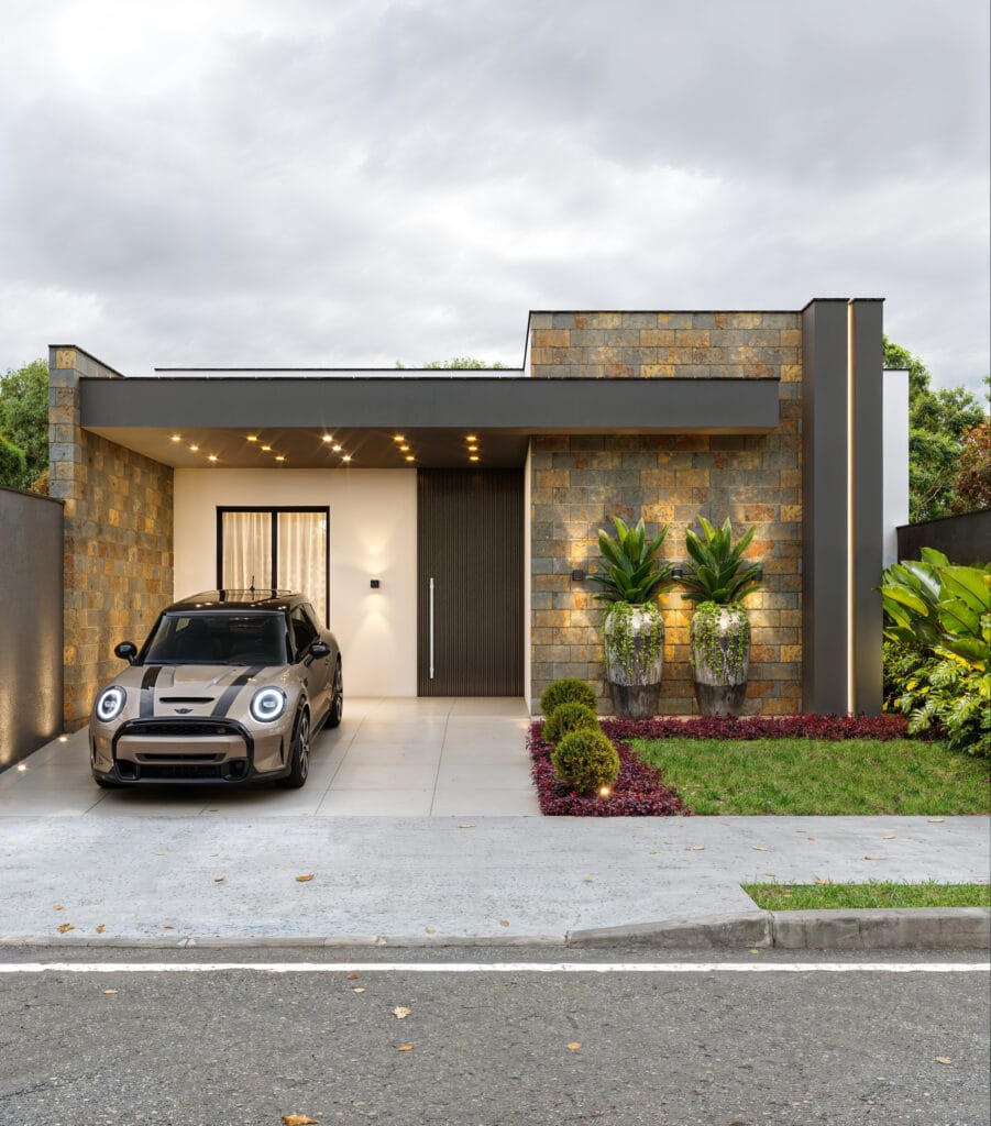 Projeto de casa térrea com garagem para dois carros 004